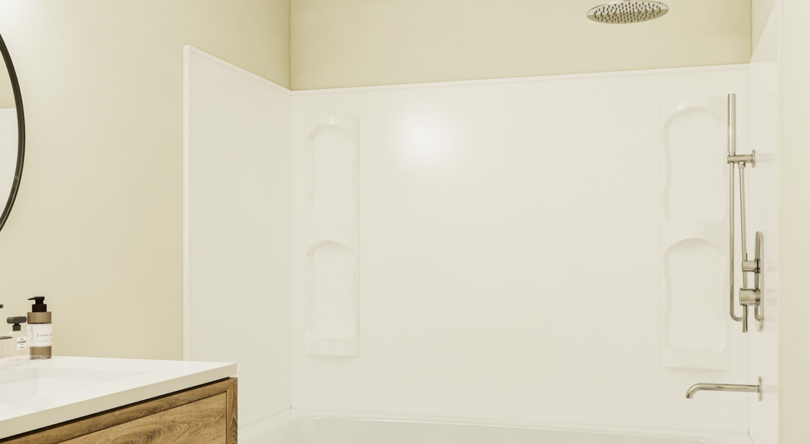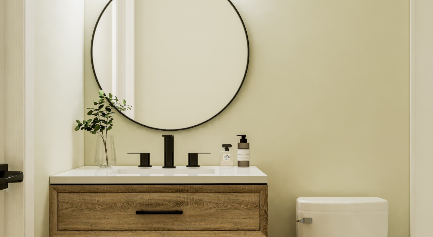 • bathroom with a large mirror and sink