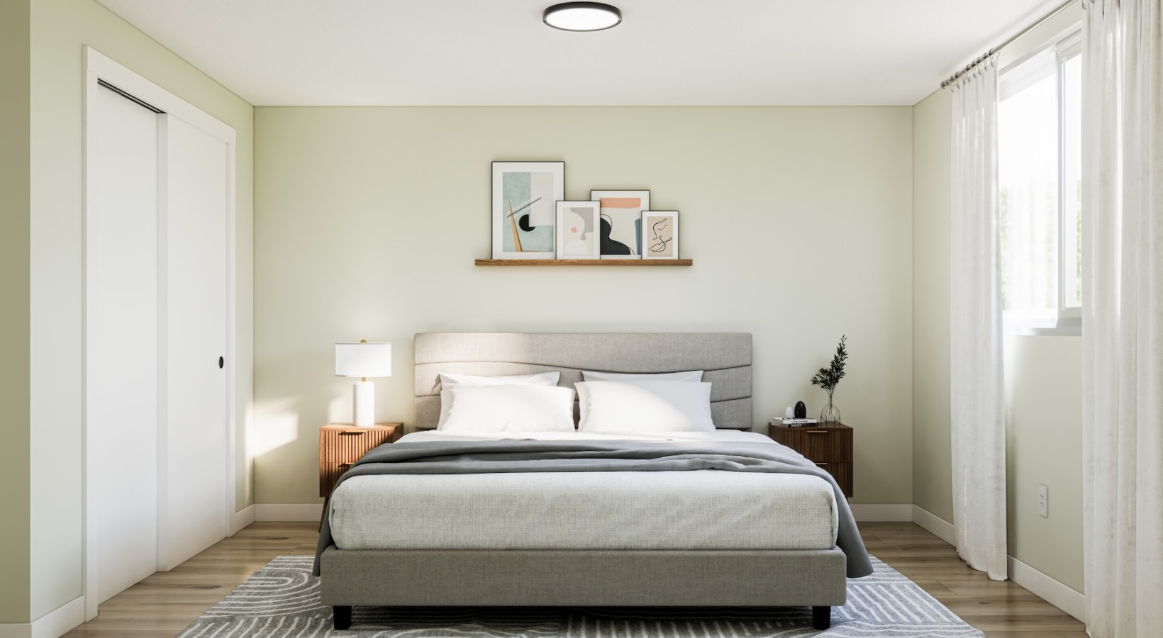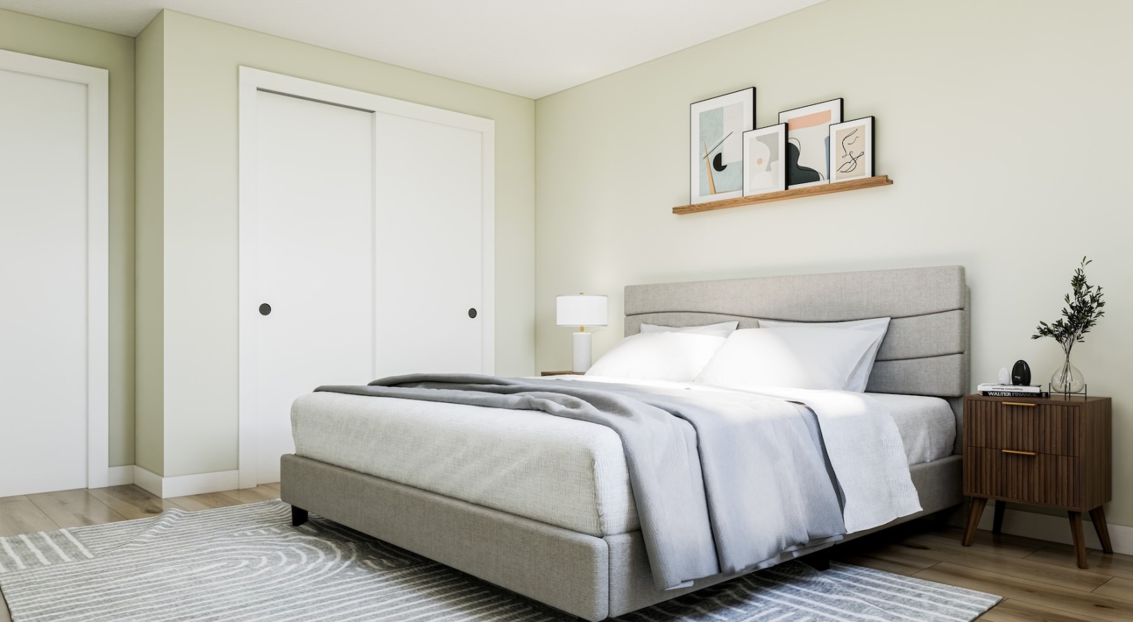 • bedroom with a large bed and nightstands on each side