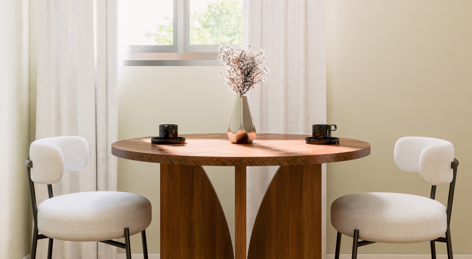 • dining area with a table and chairs next to a window