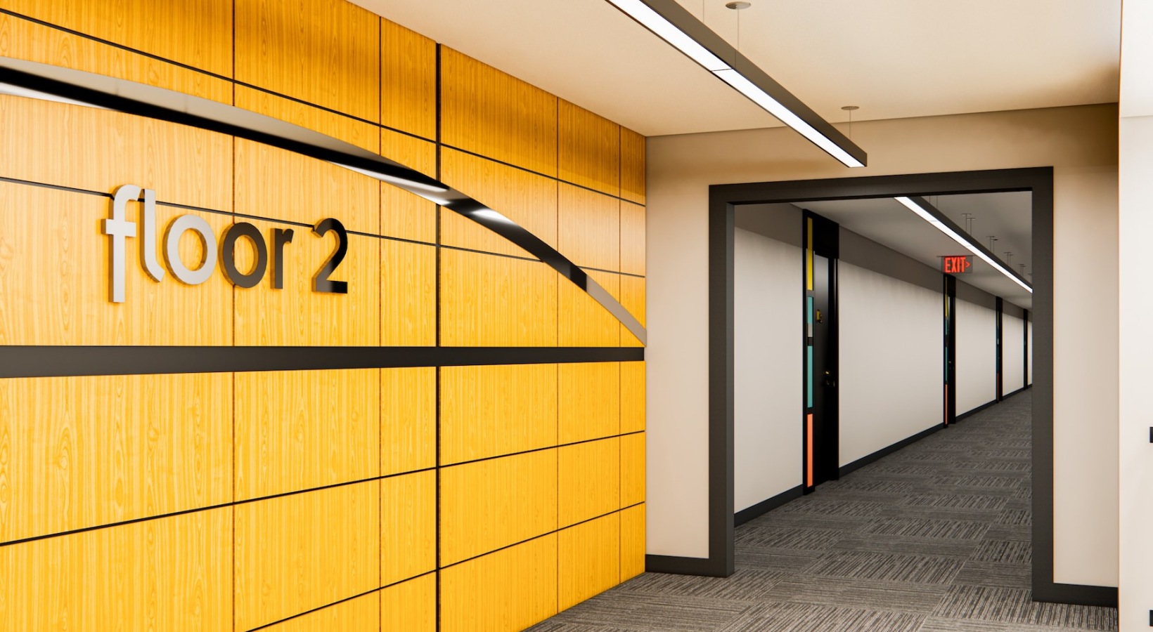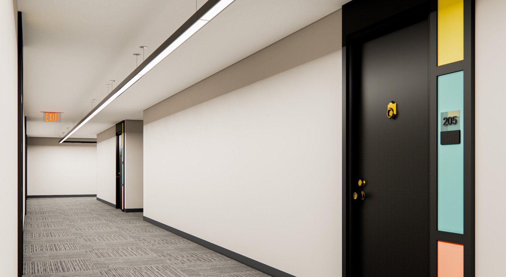 • a hallway with doors
