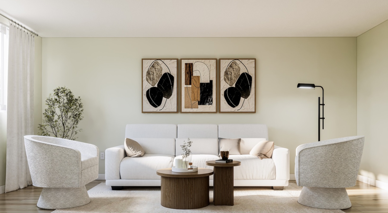• living room with furniture table plant and lamp