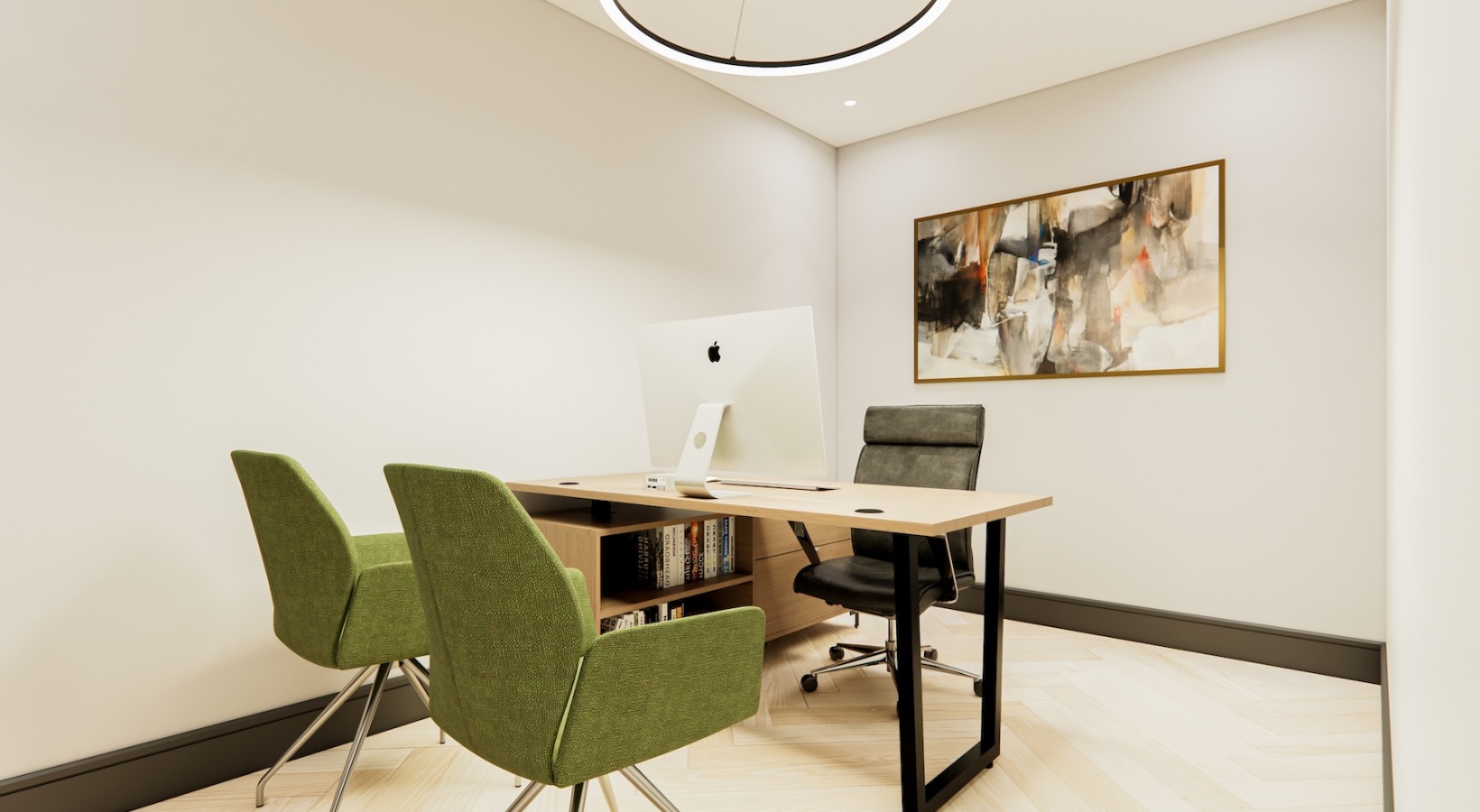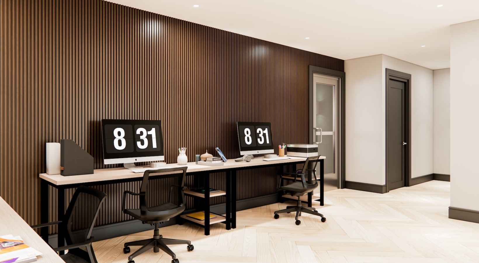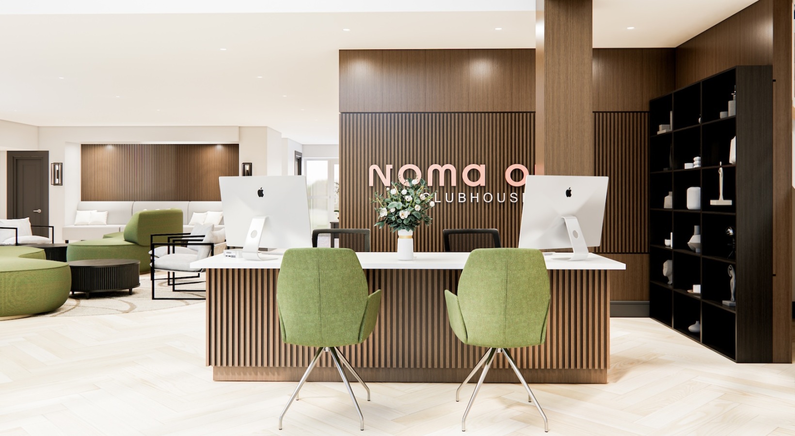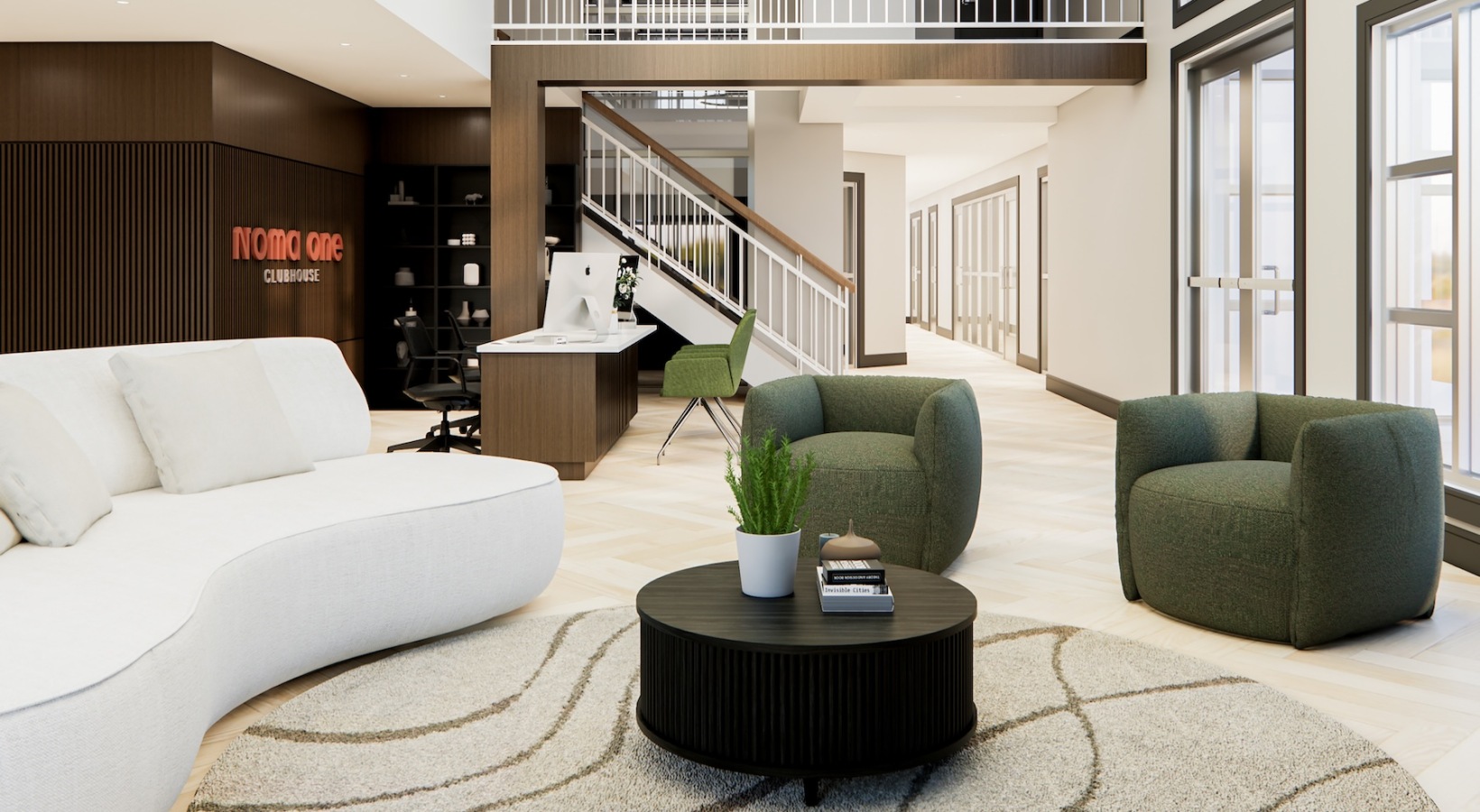 • a leasing area with a computer and chairs