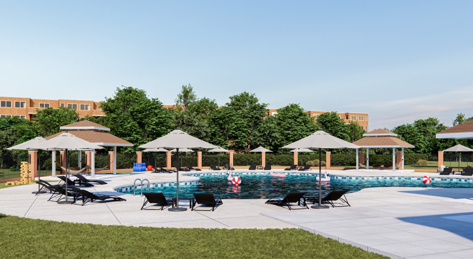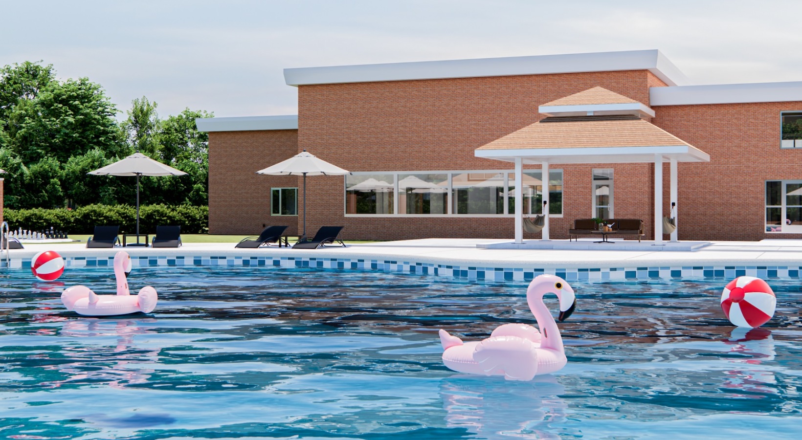 • a pool area with lounge seating