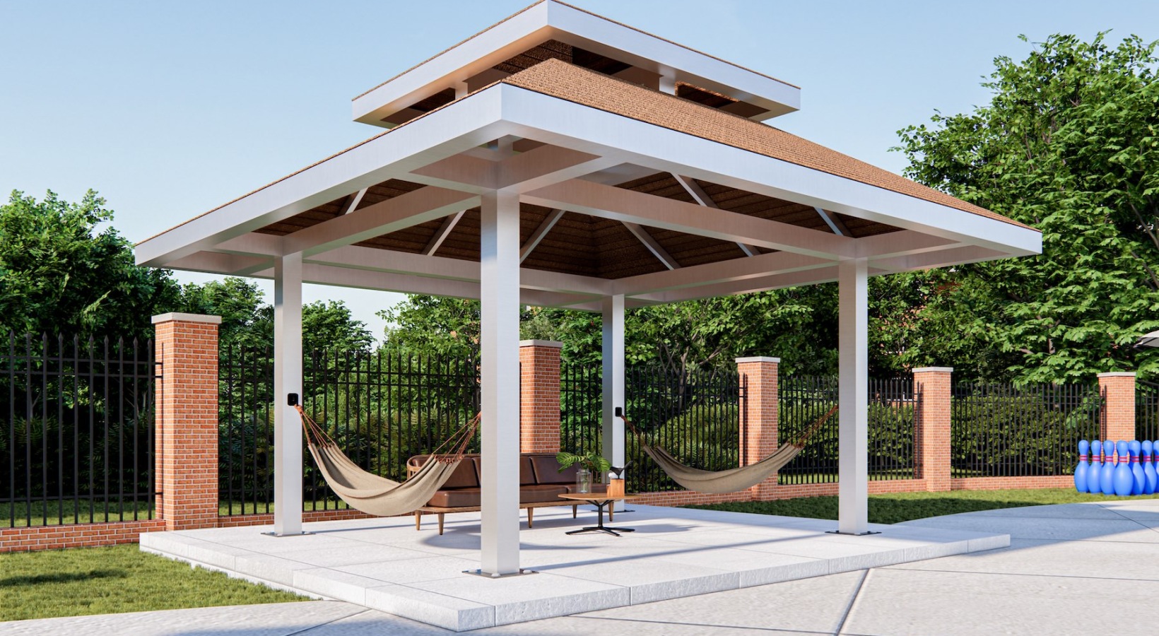 • hammocks next to a pool