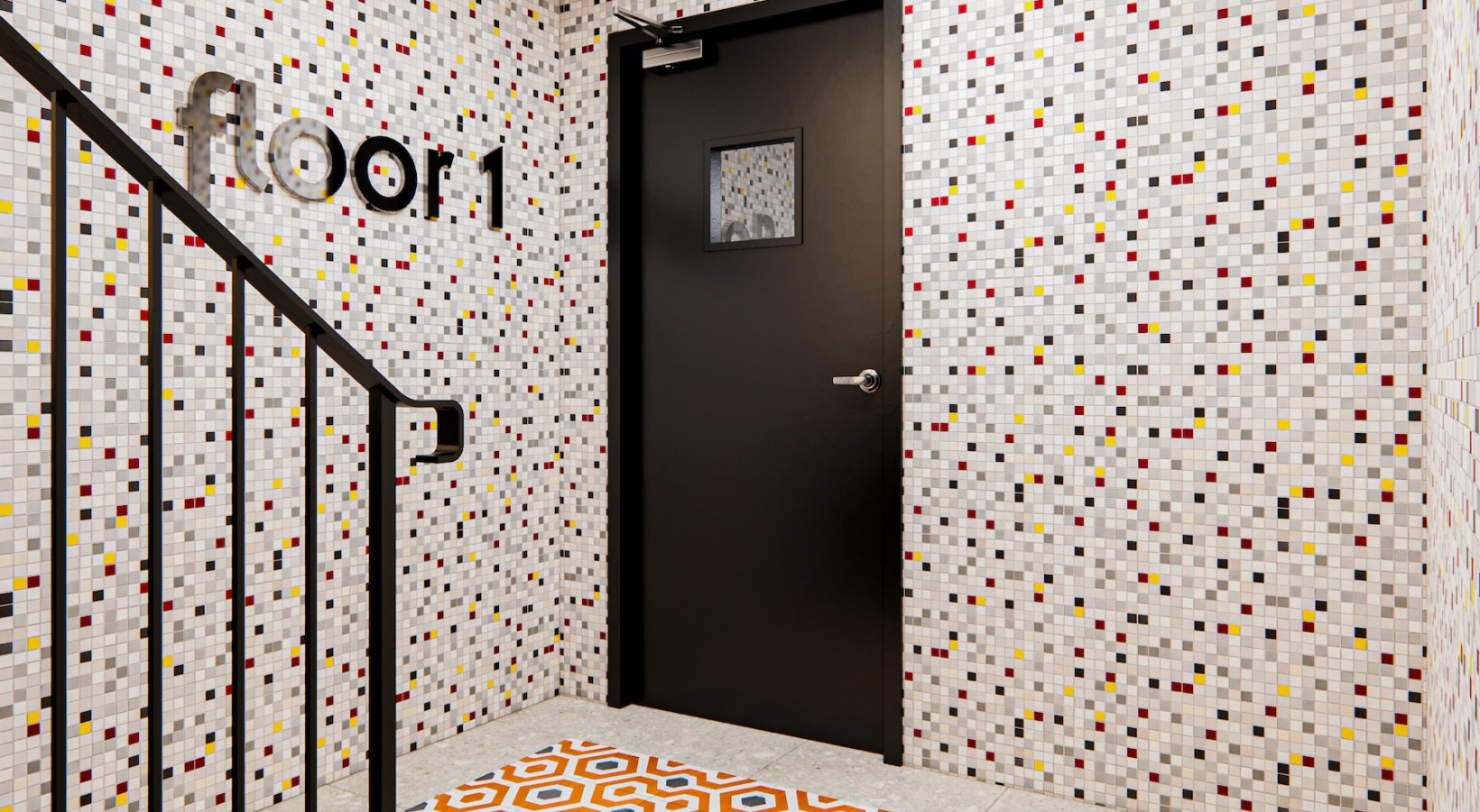 • a stairwell with a door