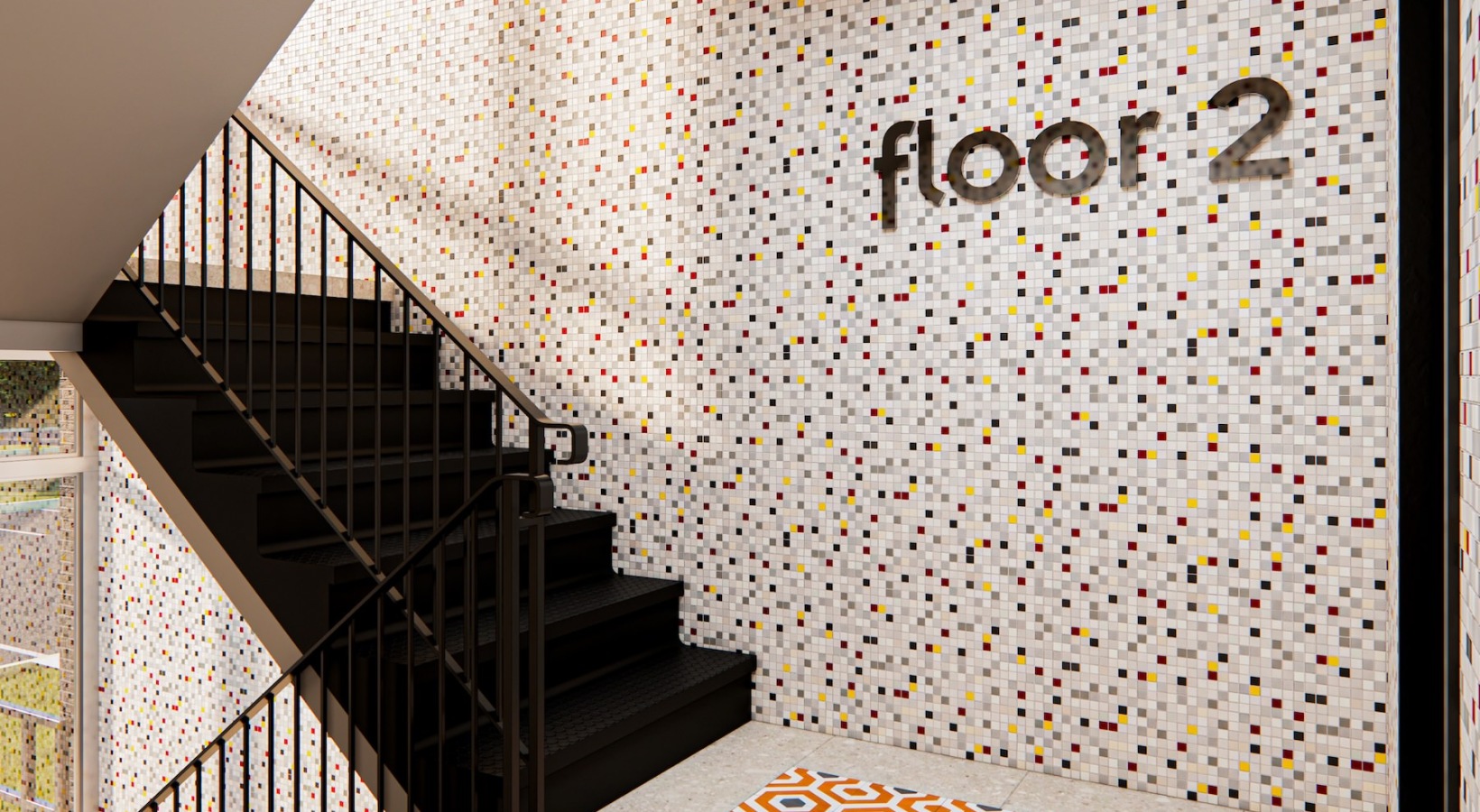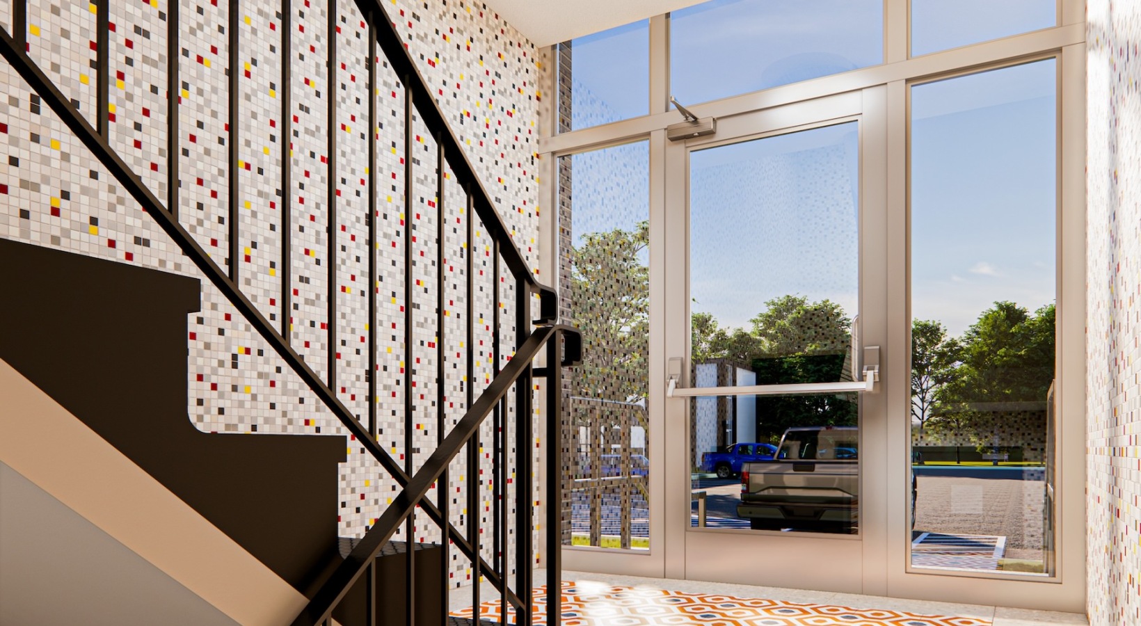• a stairwell with a glass door