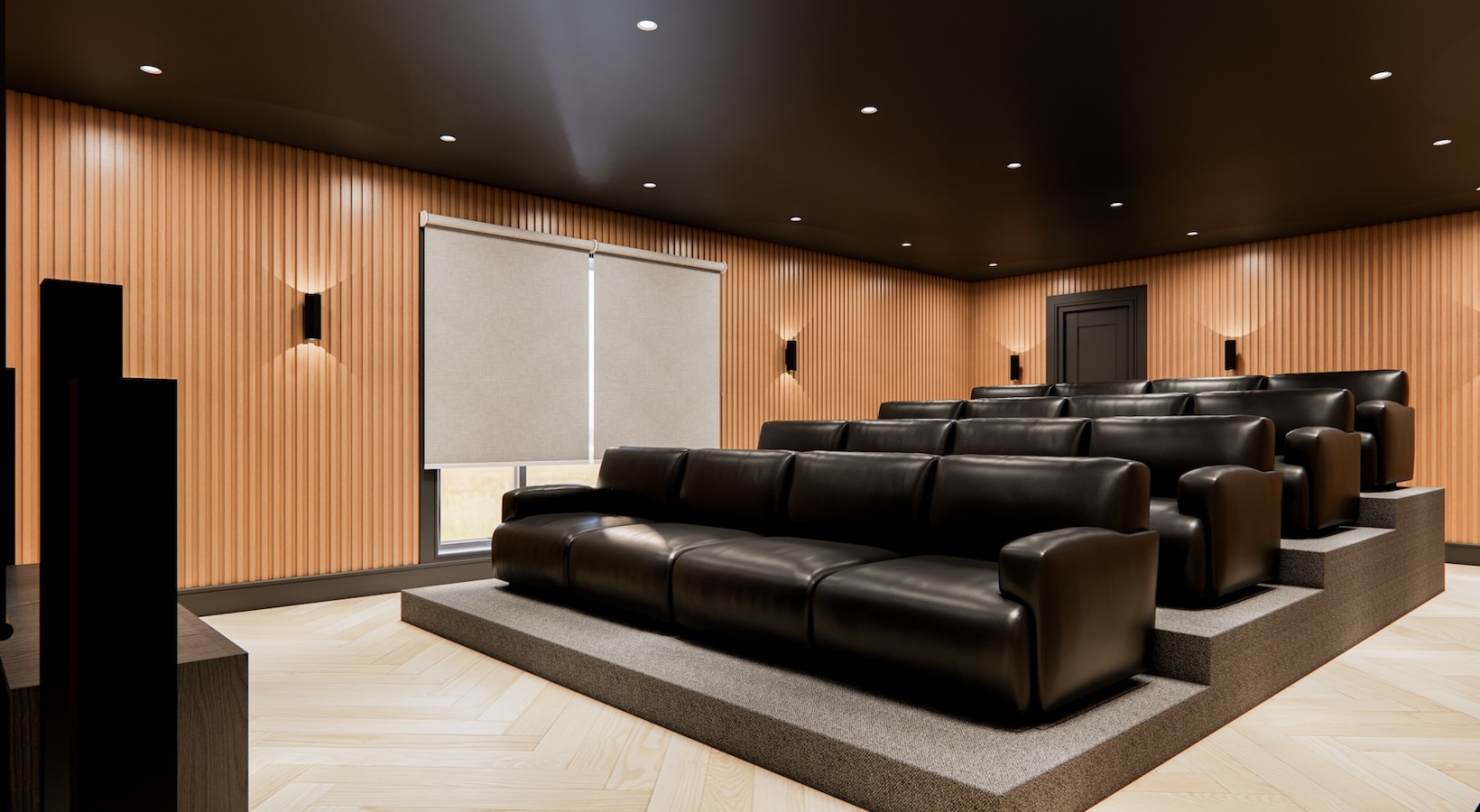 • a theater room with lounge recliners